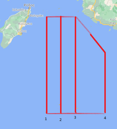 36 20.00 N – 028 30.00 E 36 20.00 N – 028 45.00 E 36 20.00 N – 029 00.00 E