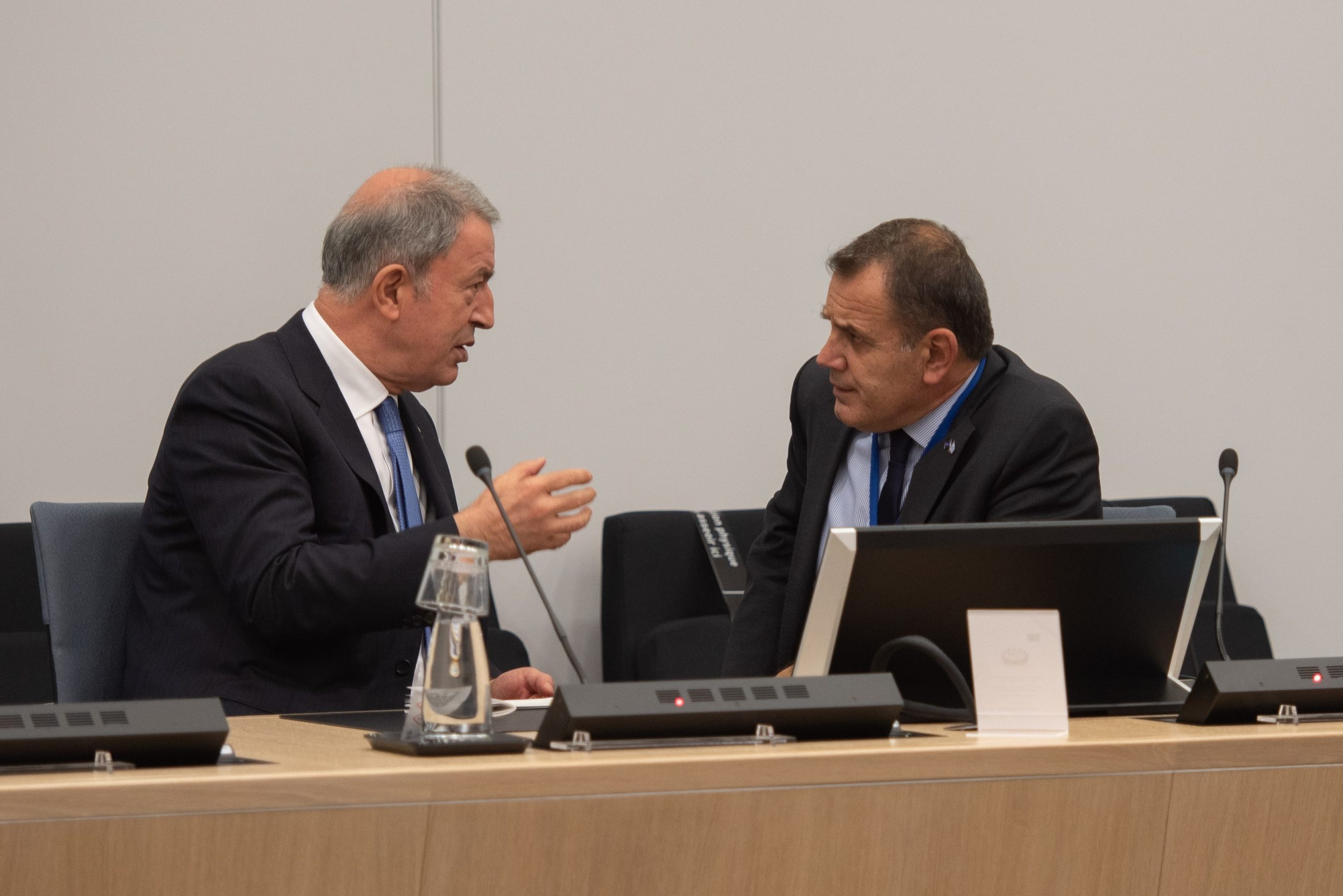 Με τον Χουλουσί Ακάρ, συναντήθηκε ο υπουργός Εθνικής Αμυνας Νίκος Παναγιωτόπουλος, σήμερα στο περιθώριο της Συνόδου Υπουργών Αμυνας του ΝΑΤΟ προκειμένου να μιλήσουν για διαύλους.