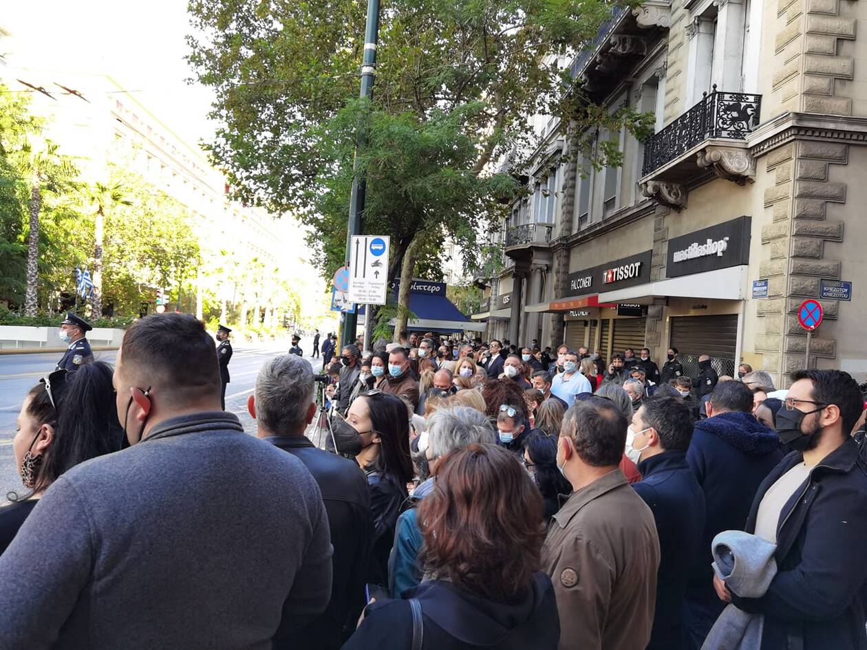 Την ίδια ώρα στα πεζοδρόμια βρίσκονται εκατοντάδες Αθηναίοι φορώντας τις μάσκες τους όπως προέβλεπε η σύσταση των ειδικών του υπουργείου Υγείας για να αποφευχθεί διασπορά του κορωνοϊού, προκειμένου να χειροκροτήσουν τους μαθητές και τις μαθήτριες που παρελαύνουν για την 28η Οκτωβρίου.