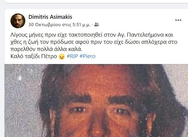 Η τραγική ειρωνεία είναι ότι στην τελευταία του ανάρτηση στο Facebook είχε αποχαιρετήσει τον Πέτρο Παπαϊωάννου, ο οποίος ήταν γνωστός ως “Πιέρο” (Piero).