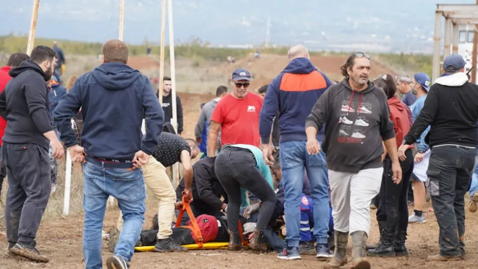 Οι άτυχοι θεατές τραυματίστηκαν σοβαρά το απόγευμα της Κυριακής 17 Οκτωβρίου, όταν ένας αναβάτης, που συμμετείχε στον αγώνα για το Πανελλήνιο Πρωτάθλημα Motocross, έχασε τον έλεγχο της μοτοσικλέτας που επιχειρούσε άλμα κι έπεσε πάνω σε προστατευτική περίφραξη και σε κολώνα.