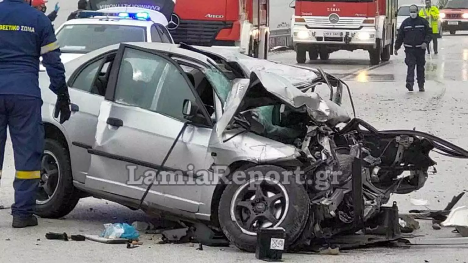 Όπως φαίνεται και στις φωτογραφίες το αυτοκίνητο μετατράπηκε σε άμορφη μάζα.