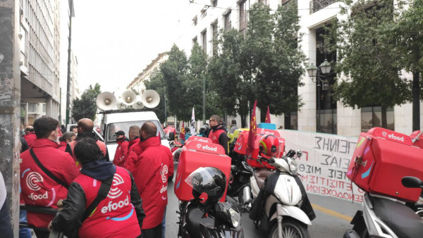 Αυτή την στιγμή πραγματοποιούν πορεία διαμαρτυρίας στο κέντρο της Αθήνας διανομείς, εργαζόμενοι και καταστηματάρχες από τον κλάδο της εστίασης, οι οποίοι έφτασαν έξω από το υπουργείο Εργασίας.