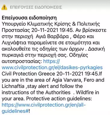 Αξίζει να σημειωθεί πως όσοι βρίσκονται στο νησί έλαβαν λίγο πριν τις 20.00 το βράδυ μήνυμα από το 112: