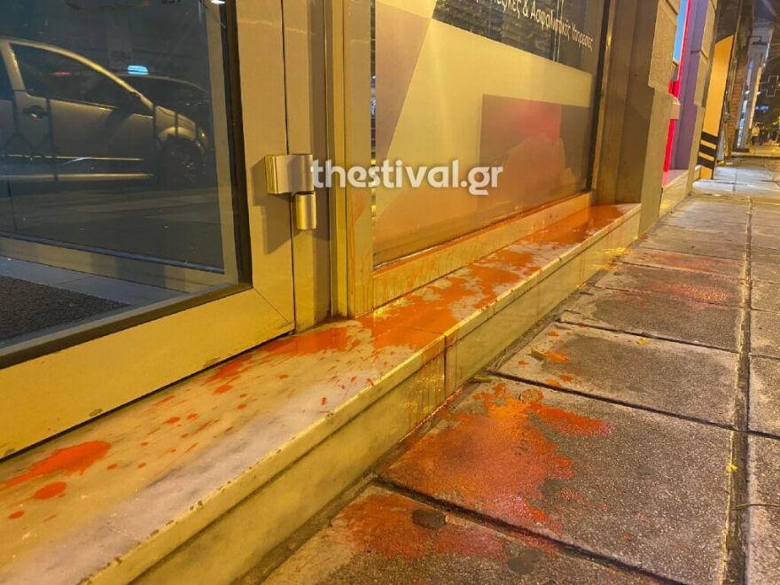 Σύμφωνα με πληροφορίες είχαν καλυμμένα τα χαρακτηριστικά τους και με βαριοπούλες προκάλεσαν φθορές στους υαλοπίνακες καθώς και στο ATM της τράπεζας στην οδό Ίωνος Δραγούμη, ενώ πέταξαν και κόκκινη μπογιά.