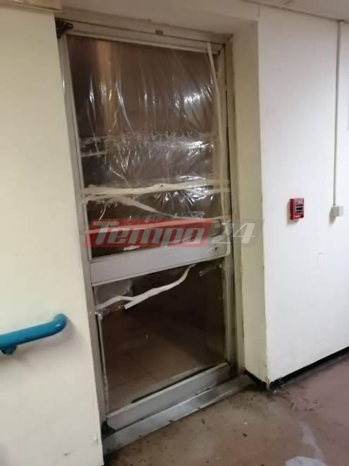 Μία πόρτα δεν έχει τζάμι και προσπάθησαν να την “μπαλώσουν” πρόχειρα με νάιλον και ταινίες για να μην μπαίνει το κρύο και η βροχή. Εντύπωση και οργή προκαλεί το γεγονός ότι δεν είναι η πρώτη φορά που καταγράφονται αντίστοιχες εικόνες στο νοσοκομείο της Πάτρας, με το πρόβλημα να μην έχει λυθεί ακόμα.