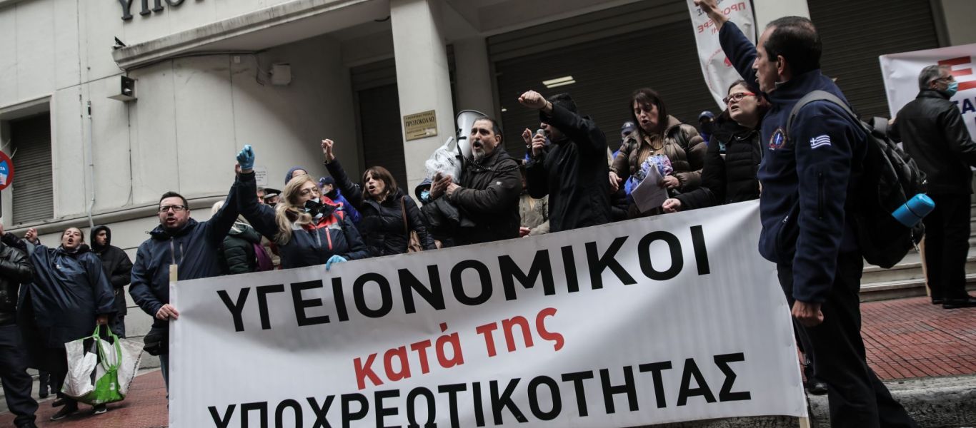 Οι υγειονομικοί συνεχίζουν τον αγώνα τους κατά της υποχρεωτικότητας του εμβολιασμού και διεκδικούν ακόμα την άρση αναστολών εργασίας, αύξηση μισθών και ένταξη στα βαρέα και ανθυγιεινά.