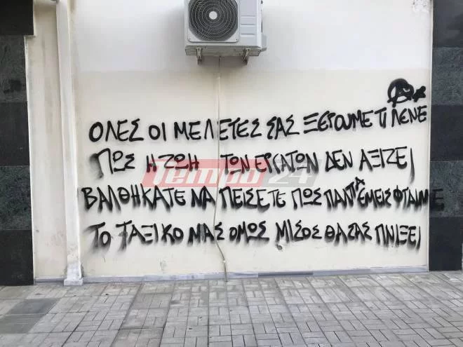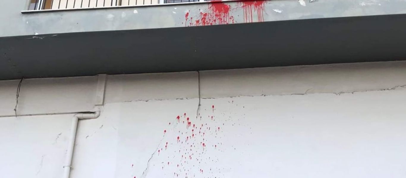 Οι άγνωστοι πέταξαν μπογιές στην είσοδο και στην πρόσοψη του κτιρίου, ενώ έγραψαν και συνθήματα υπογράφοντας το με χαρακτηριστικό «Α».
