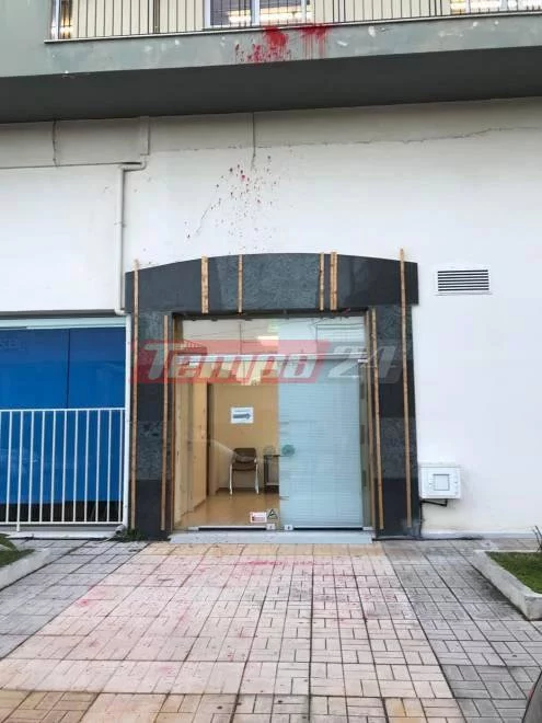 Όπως φαίνεται και στα φωτογραφικά στιγμιότυπα που εξασφάλισε το tempo24 οι μπογιές έφθασαν μέχρι τον πρώτο όροφο του οικήματος.
