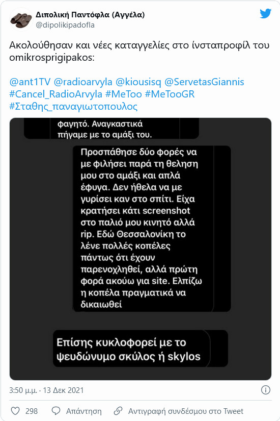 Δεκάδες είναι οι γυναίκες που καταγγέλλουν τον Στάθη Παναγιωτόπουλο για δημοσιοποίηση των προσωπικών στιγμών, καθώς και τα μηνύματα που είχε στείλει σε νεαρές γυναίκες το πρώην μέλος των «Ράδιο Αρβύλα».