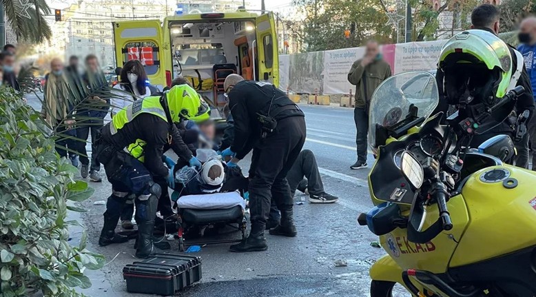 Η σύγκρουση των δυο μηχανών μεταξύ τους στην Πανεπιστημίου ήταν σφοδρή και οι αναβάτες τους εκτινάχτηκαν πολλά μέτρα ενώ και οι μηχανές σύρθηκαν στο δρόμο.