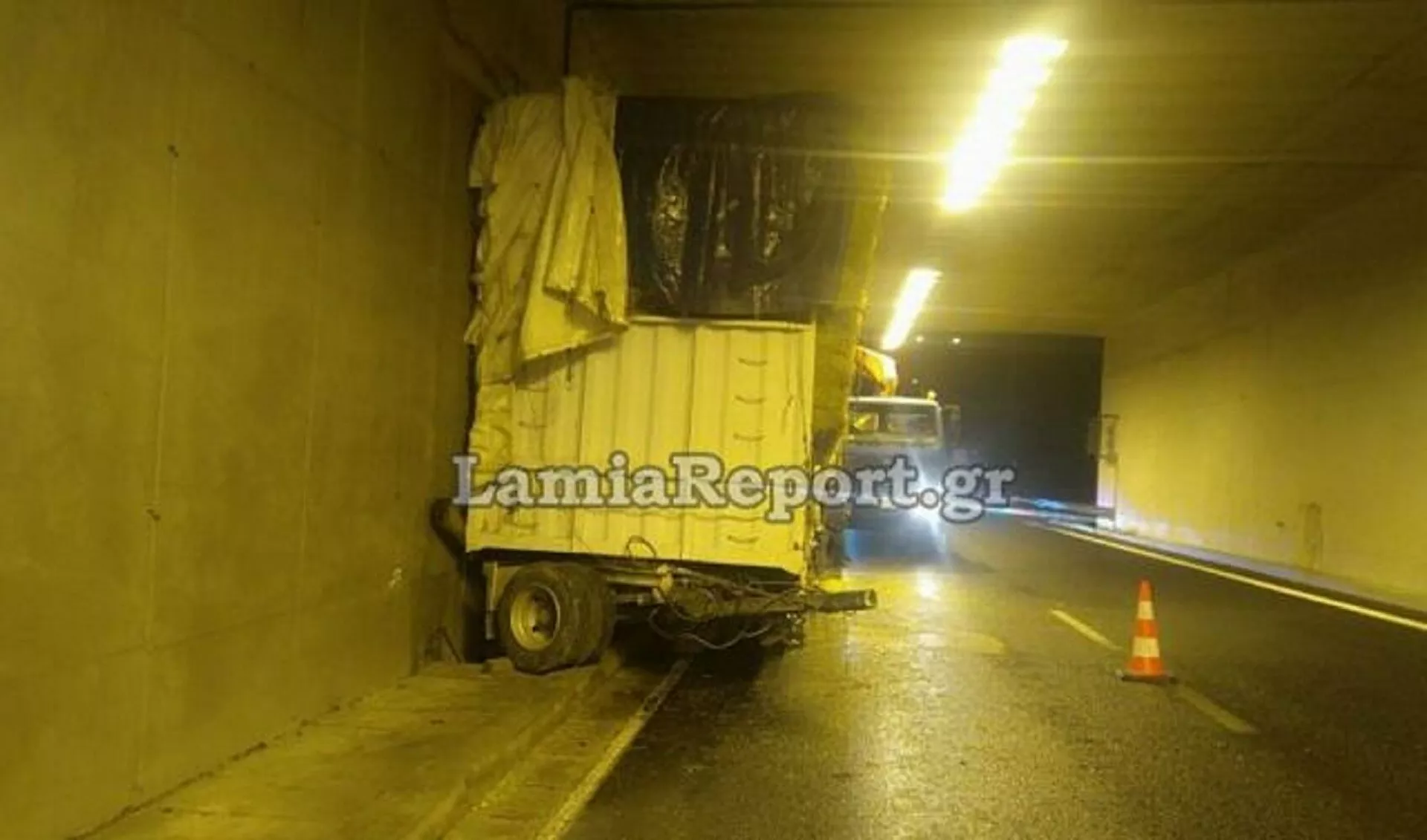 Τρέιλερ έσπασε & έκανε «τρελή» πορεία για 100μ. μέσα σε τούνελ της Εθνικής Οδού στα Καμένα Βούρλα (φώτο)