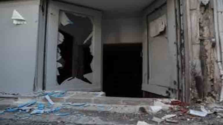 Από την έκρηξη προκλήθηκαν ζημιές στην πρόσοψη, αλλά και σε τρία σταθμευμένα αυτοκίνητα.