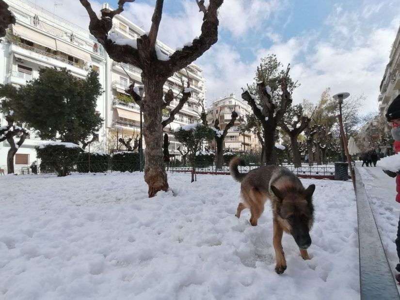 Αρκετοί είναι εκείνοι που αψηφούν το κρύο και κάνουν μια βόλτα στη χιονισμένη γειτονιά τους, ενώ αυτοί που σίγουρα το απολαμβάνουν είναι οι τετράποδοι φίλοι μας, τα σκυλιά που παίζουν με το χιόνι.