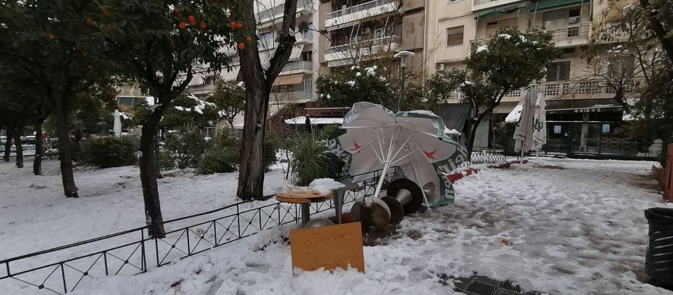 Ισχυρή χιονόπτωση σε όλη την Αττική προκάλεσε η κακοκαιρία «Ελπίς», με το χιόνι να παραμένει σε πολλά σημεία στο κέντρο της Αθήνας.