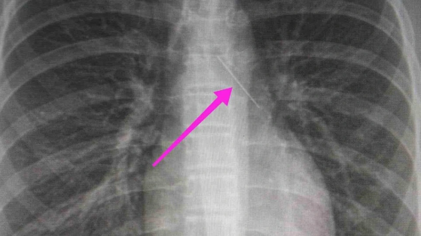 Από την απεικονιστική διερεύνηση που πραγματοποιήθηκε με ακτινογραφία θώρακος αρχικά και ακολούθως με αξονική τομογραφία θώρακος, διαπιστώθηκε η ύπαρξη αιχμηρού μεταλλικού ξένου σώματος στην αναπνευστική οδό (δεξιός κύριος βρόγχος) και όχι στην πεπτική οδό, αναφέρει η ανακοίνωση του νοσοκομείου, στα μέσα κοινωνικής δικτύωσης.