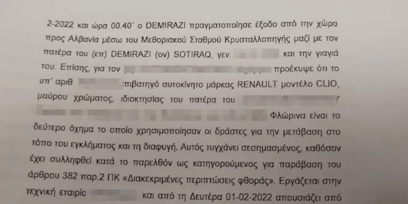 Με τον πατέρα του και τη γιαγιά του στο όχημα, διέφυγε στην Αλβανία ο 20χρονος που κατηγορείται για συμμετοχή στη δολοφονία του Άλκη Καμπανού.