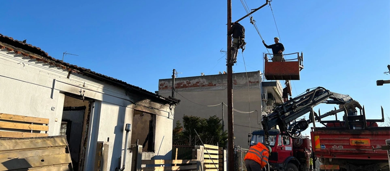 Από νωρίς το πρωί, συνεργεία της ΔΕΔΔΗΕ είναι στο σημείο, καθώς από την πυρκαγιά σημειώθηκε διακοπή στην ηλεκτροδότηση. Τοποθετούν νέα κολώνα ηλεκτροδότησης διότι αυτή που βρισκόταν έξω από το σπίτι κάηκε.
