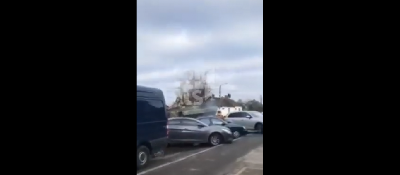 Την ίδια στιγμή βίντεο δείχνει ένα τανκ στην Ουκρανία να περνάει πάνω από τα αυτοκίνητα.