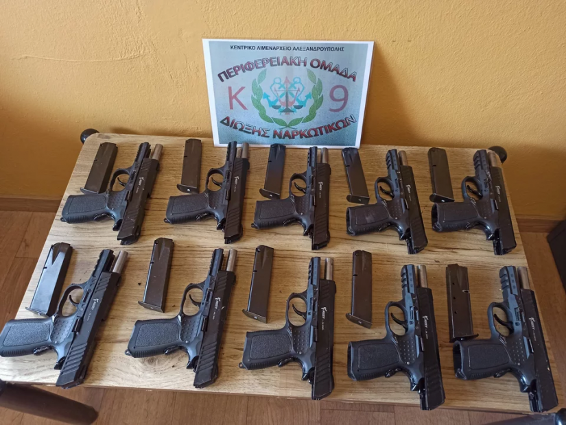 Σύμφωνα με ανακοίνωση της ΕΛ.ΑΣ., «στη σύλληψη πέντε αλλοδαπών, ηλικίας 21, 26, 37, 38 και 42 ετών, προέβησαν στελέχη της Περιφερειακής Ομάδας Δίωξης Ναρκωτικών (Π.Ο.ΔΙ.Ν.) του Κεντρικού Λιμεναρχείου Αλεξανδρούπολης, σε συνεργασία με στελέχη της Υπηρεσίας Δίωξης Ναρκωτικών της Διεύθυνσης Αστυνομίας Κομοτηνής, για από κοινού εισαγωγή, λαθρεμπορία, μεταφορά, κατοχή και αποθήκευση δέκα (10) πιστολιών τουρκικής προέλευσης διαμετρήματος 9mm, με αποξασμένους τους αριθμούς σειράς, κατά παράβαση των άρθρων 2, 6, 7 και 11 του Ν.2168/1993 και του άρθρου 45 Π.Κ. καθώς και για παράνομη είσοδο στη χώρα, κατά παράβαση του άρθρου 83 του Ν.3386/2005».