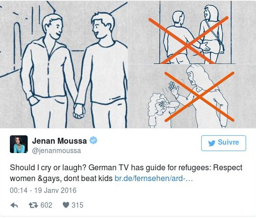 Στη Γερμανία υπάρχουν ήδη πολλοί οδηγοί, σε μορφή βιβλίου, για τους πρόσφυγες και λαθρομετανάστες που μιλούν ήδη τα γερμανικά. Εφτιαξαν τώρα και οδηγίες-συμβουλές διαθέσιμες σε 14 γλώσσες. Αυτοί οι κανόνες αφορούν όλη την κοινωνική ζωή, από την ανακύκλωση ως τους καλούς τρόπους μέσα στα μέσα μεταφοράς, περνώντας από το ντύσιμο και την συμπεριφορά των ζευγαριών στον δημόσιο χώρο.