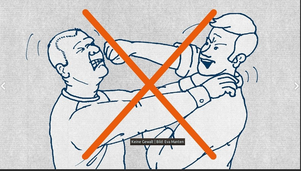 Τα σκίτσα συμβουλεύουν τους πρόσφυγες και λαθρομετανάστες να μη παρενοχλούν σεξουαλικά γυναίκες, να μην ενοχλούνται απο τους ομοφυλόφιλους, να μη χτυπούν τα παιδιά τους, να μη γρονθοκοπούνται για να λύσουν τις διαφορές τους.