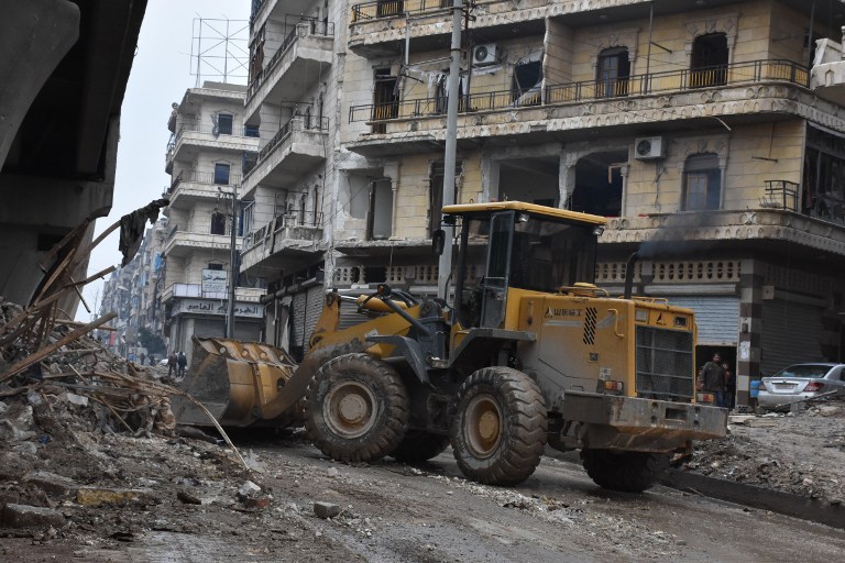 Οι μπουλντόζες της κυβέρνησης του Μπασάρ αλ Άσαντ έπιασαν δουλειά και οι εικόνες που αναδείχθηκαν στα διεθνή πρακτορεία είναι συγκλονιστικές. Στους άδειους από κόσμο δρόμους, σε μία πόλη-φάντασμα, τα μηχανήματα άρχισαν να καθαρίζουν ό,τι υλικό υπήρχε, ξεκινώντας μία διαδικασία που θα μπορούσε κάλλιστα να χαρακτηριστεί ως το «έναυσμα για μία νέα εποχή».