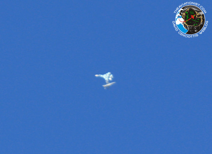 Η αερομαχία των δύο αεροσκαφών έγινε σε μεγάλο ύψος μεταξύ 20 και 30 χιλιάδων ποδών κοντά στην περιοχή Groom Lake της Νεβάδα, στις 8 Νοεμβρίου, αλλά οι φωτογραφίες είδαν τώρα το φως της δημοσιότητας. .