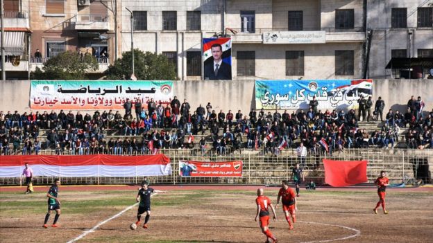 Ολα είχαν διαλυθεί στο Χαλέπι, αφού είχε κοπεί στα δυο. Από τη μια ο στρατός του Ασαντ και από την άλλη οι επαναστατικές δυνάμεις. Ωστόσο, η πόλη βρέθηκε στα χέρια της Κυβέρνησης έπειτα από την αντεπίθεση του τελευταίου μήνα κι από τις πρώτες ενέργειες της πλευράς του Ασαντ ήταν η διεξαγωγή ενός αγώνα. Το γρασίδι ήταν καφέ, καμένο από το κρύο κι από το γεγονός πως δεν το φρόντισαν την τελευταία πενταετία.