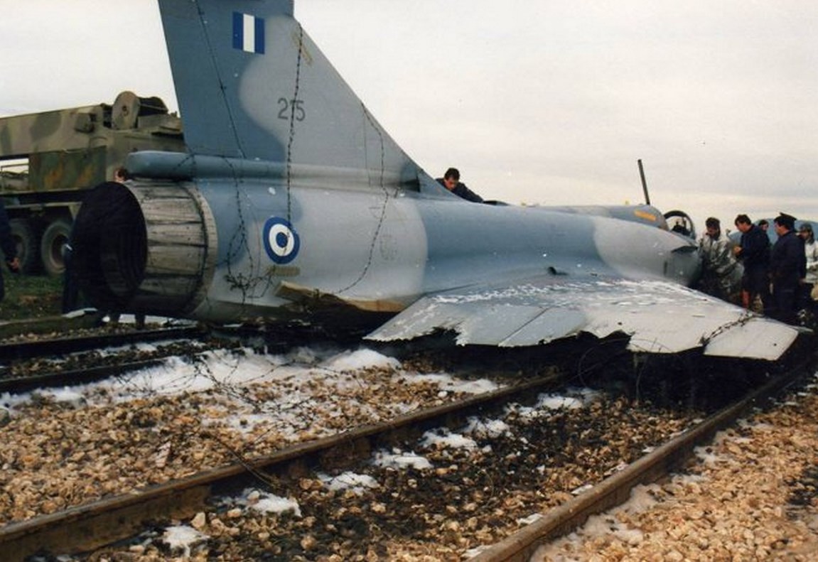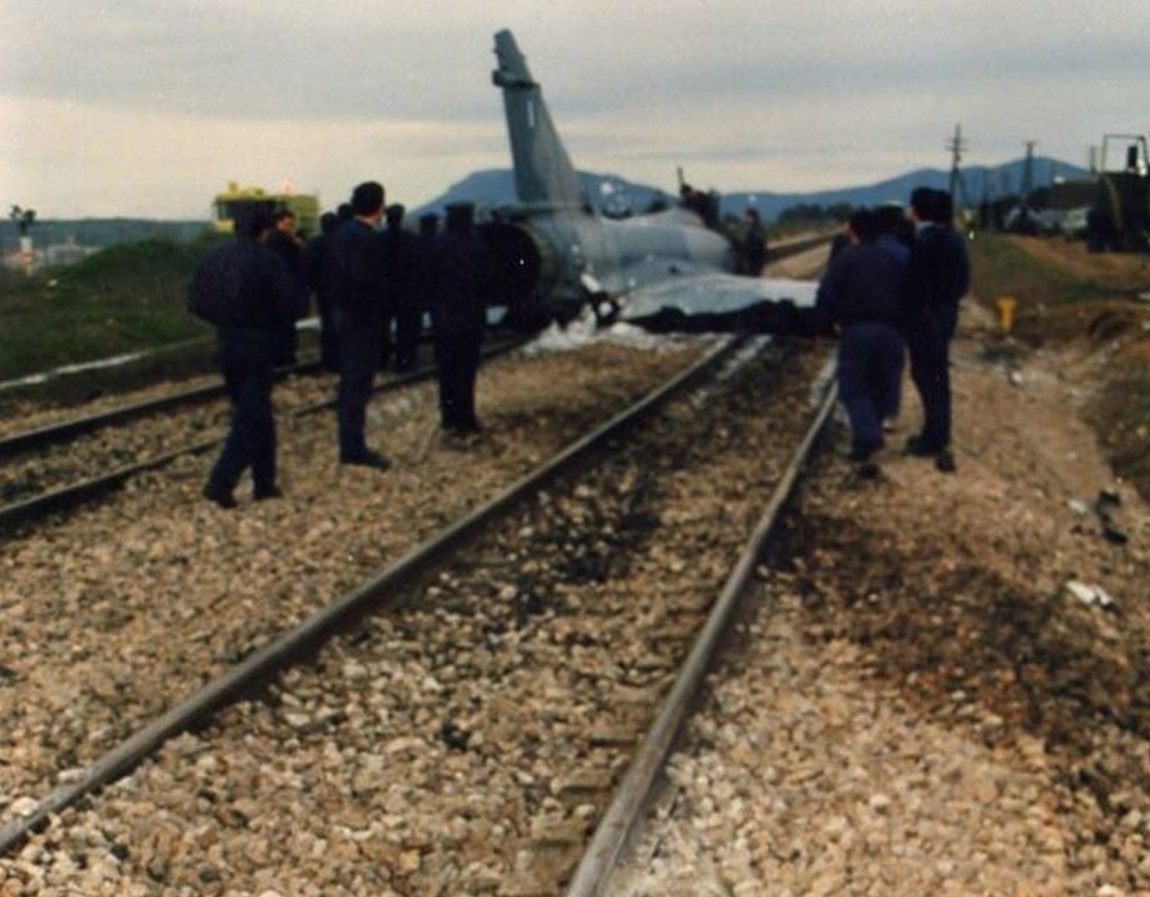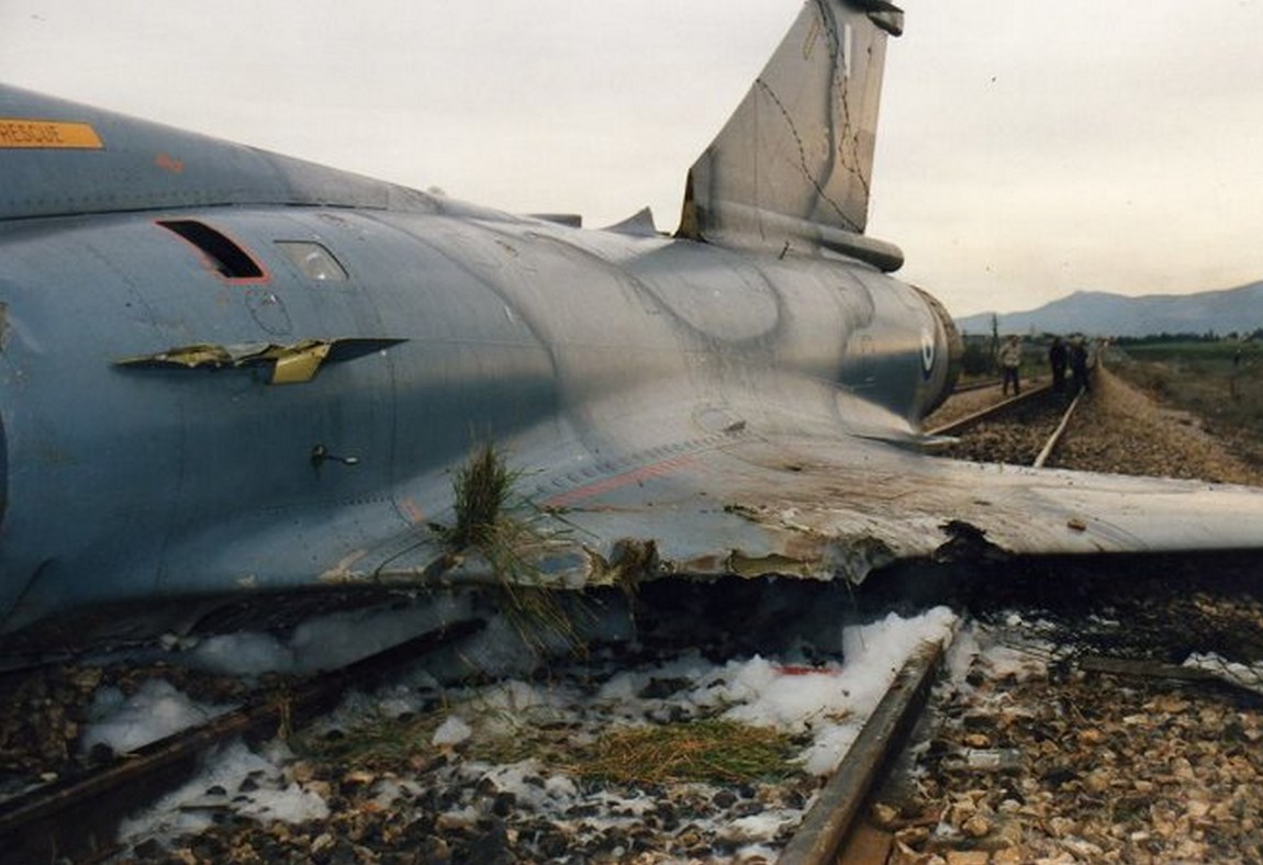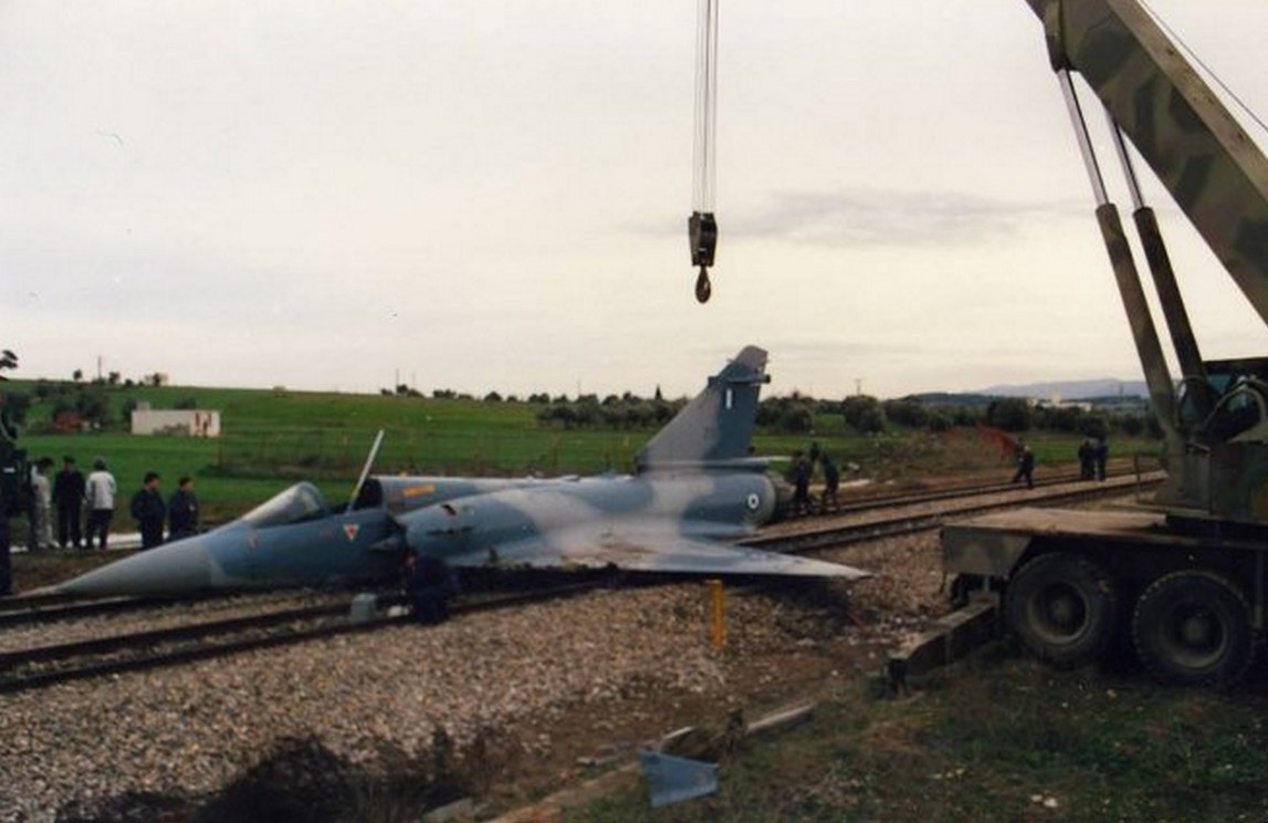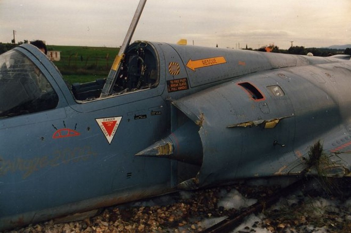 To 1991 μαχητικό Μirage 2000EGM της 331 Μοίρας της 114 ΠΜ “προσγειώθηκε” μόνο του (!) μετά από εγκατάλειψή από τον χειριστή του στις γραμμές του τραίνου κοντά στην νότια περίμετρο της αεροπορικής βάσης της Τανάγρας.