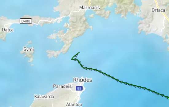 H ρότα του πλοίου, όπως δημοσιεύθηκε από τουρκικά μέσα