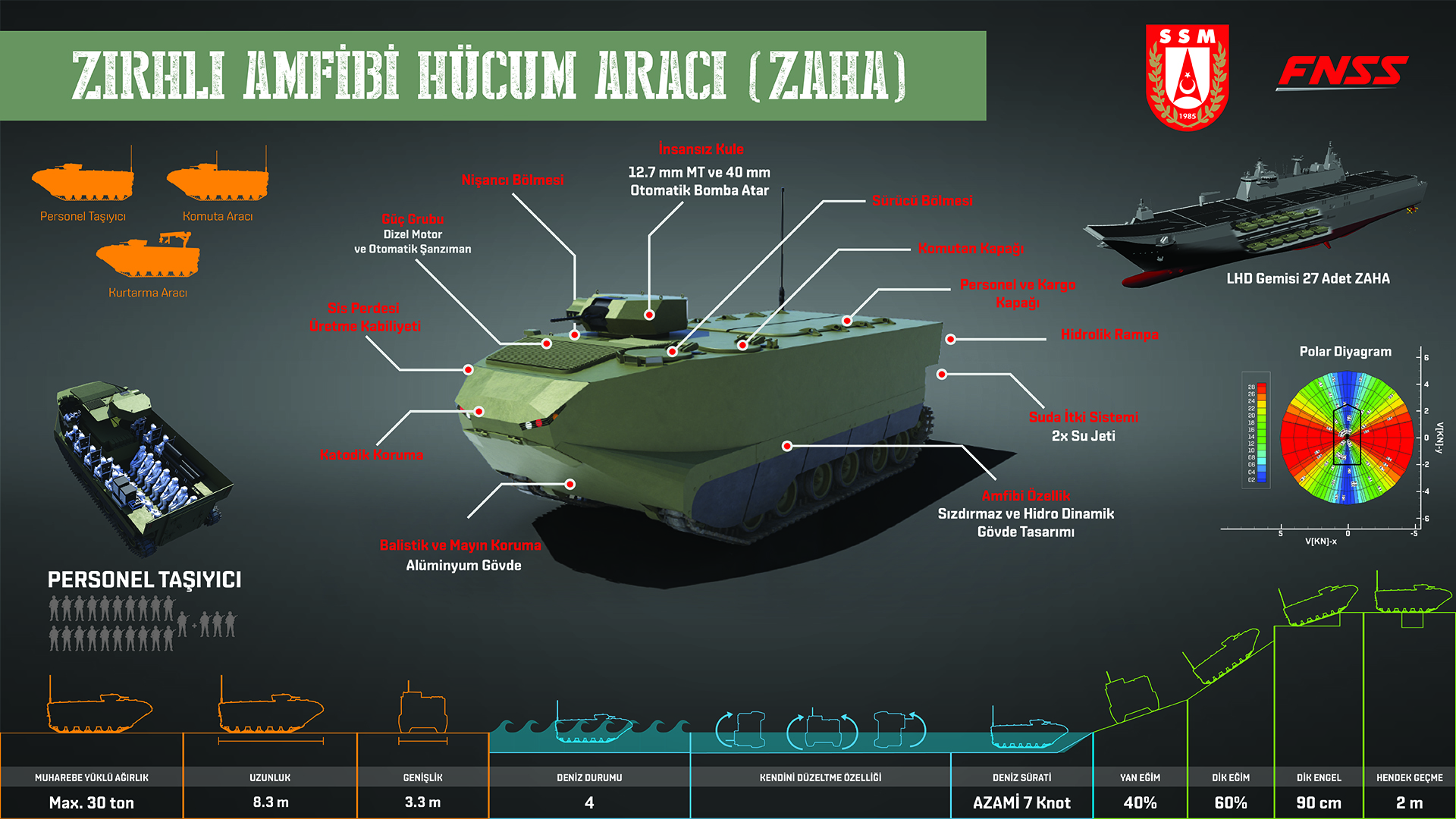 Η ανάπτυξη και κατασκευή του νέου αποβατικού Τεθωρακισμένου Οχήματος Μεταφοράς Προσωπικού, του «Zırhlı Amfibi Hücum Aracı» (ZAHA) προβλέπεται να αποτελέσει τον “εφιάλτη” του ελληνικού συστήματος άμυνας στα νησιά του Α.Αιγαίου που γειτνιάζουν με την μικρασιατική ακτή.