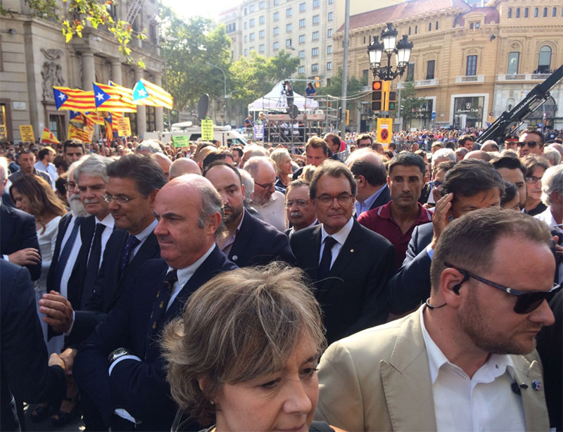 Παρουσία του Βασιλιά της Ισπανίας Φιλίππου του 6ου και τους πρωθυπουργού του Βασιλείου της Ισπανίας Μαριάνο Ραχόι, οι Καταλανοί διαδηλώνουν με βασικό σύνθημα (στην τοπική γλώσσα) No tinc por! (δεν φοβάμαι).