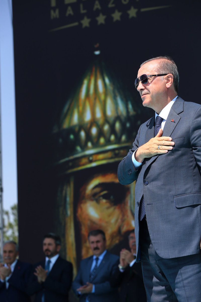 Ο αγώνας μας είναι εναντίον όχι μόνο των μέσων αλλά ουσιαστικά εκείνων που τα χρησιμοποιούν. Η Ανατολία σε όλη τη διάρκεια της ιστορίας ανέκαθεν υπήρξε μια δύναμη που άξιζε όλο τον κόσμο. Το σάβανο που φόρεσε ο σουλτάνος Αλπ Αρσλάν στο Μαντζικέρτ, το φόρεσαν όλοι όσοι έγιναν ηγέτες αυτού του έθνους» δήλωσε ο Ρετζέπ Ταγίπ Ερντογάνμπροστά σε ένα μεγάλο πλήθος.