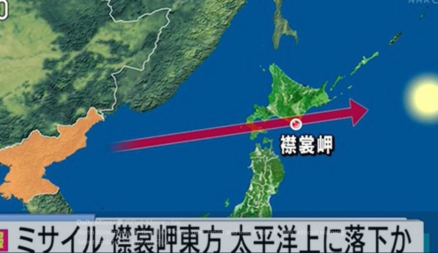 Σύμφωνα με το CNN, o πύραυλος εκτοξεύτηκε πάνω από το “Εrimo Μisaki”, στα βόρεια της νήσου Χοκάιντο λίγο πριν σπάσει σε τρία κομμάτια πριν πέσει στον Ειρηνικό Ωκεανό, περίπου 1.180 χιλιόμετρα (733 μίλια) από τις ιαπωνικές ακτές.