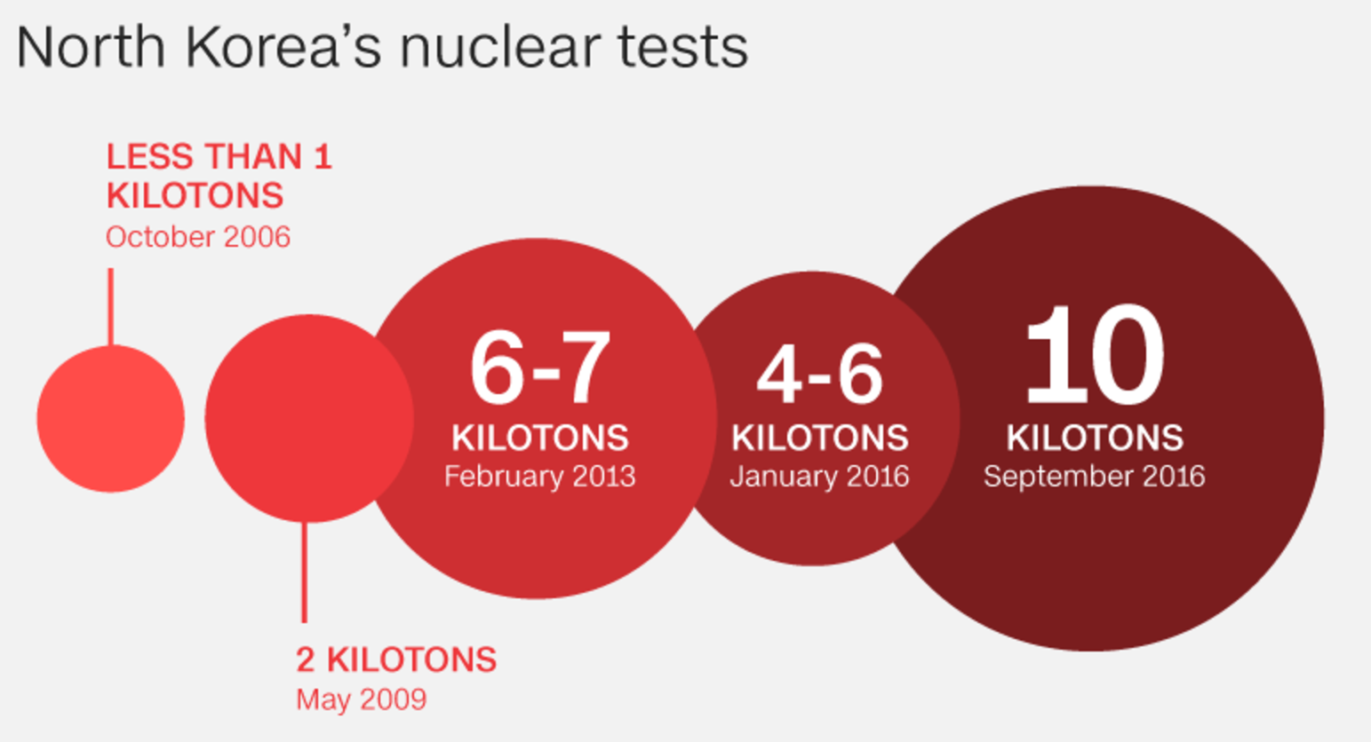 Η Βόρεια Κορέα έχει ήδη πραγματοποιήσει πέντε πυρηνικές δοκιμές – το 2006, το 2009, το 2013 και τον Ιανουάριο και το Σεπτέμβριο του 2016.