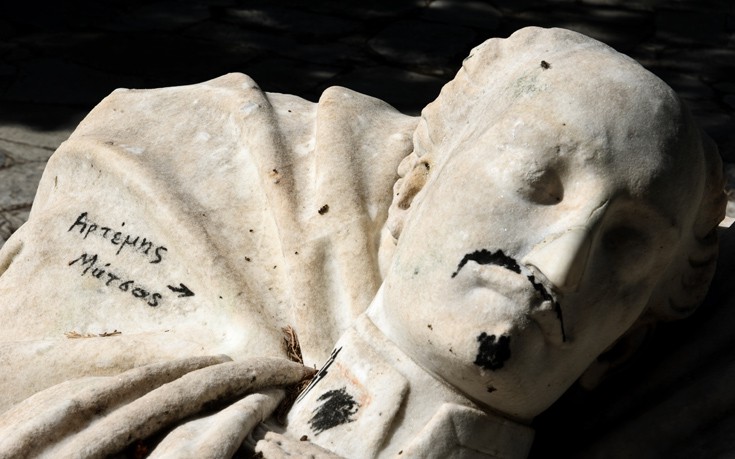 Άγνωστοι βανδάλισαν το το άγαλμα του Αλέξανδρου Υψηλάντη στο Πεδίον του Αρεως (φωτό)