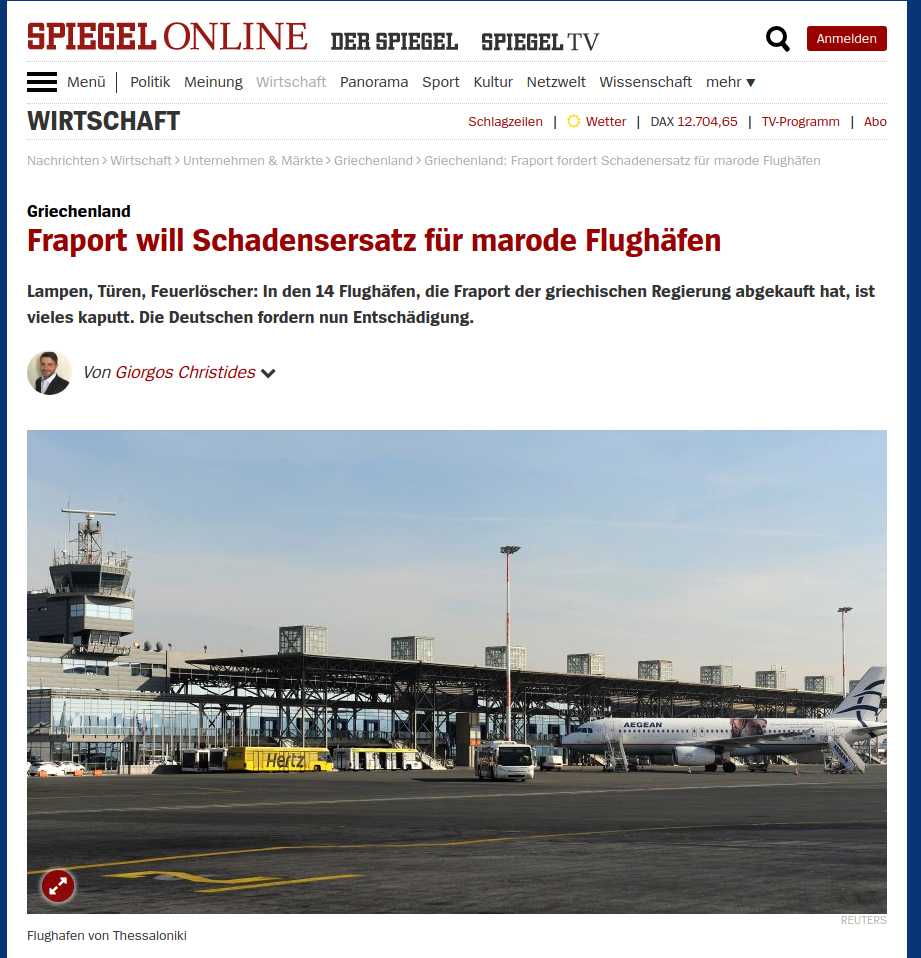 Όπως αναφέρει το Spiegel, τόσο η Fraport όσο και η ελληνική κυβέρνηση αρνήθηκαν να σχολιάσουν τις πληροφορίες του περιοδικού.
