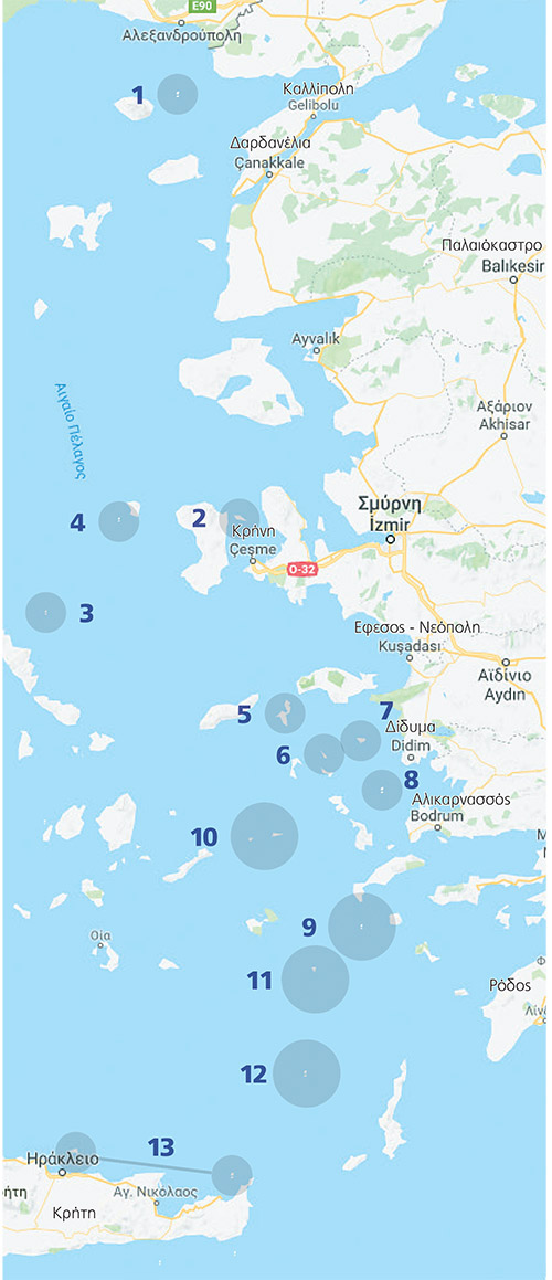 Η Τουρκία αμφισβητεί όλο και πιο έντονα, την ελληνική κυριαρχία σε… 132 νησιά, νησίδες και βραχονησίδες του Αιγαίου και Κρητικού Πελάγους, που σύμφωνα με τους προκλητικούς ισχυρισμούς τους δεν έχουν παραχωρηθεί στην Ελλάδα βάση διεθνών συνθηκών.