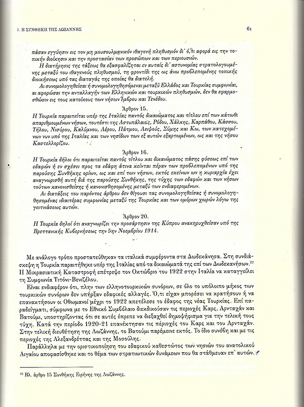 Η συνθήκη της Λωζάνης και τα άρθρα που αφορούν Ελλάδα-Τουρκία