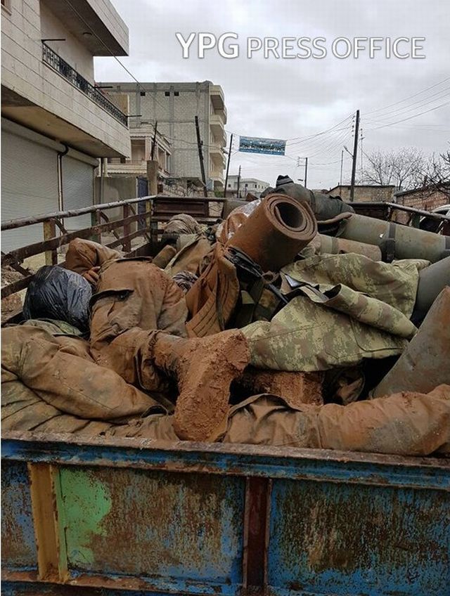 Οι κουρδικές Μονάδες Προστασίας του Λαού (YPG) έδωσαν στην δημοσιότητα φωτογραφίες με νεκρούς Τούρκους στρατιώτες, που σκοτώθηκαν στις μάχες με τους Κούρδους πολιτοφύλακες στην Αφρίν.