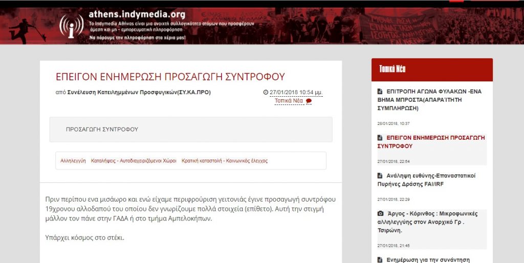 Συναγερμός σήμανε στην Αντιτρομοκρατική αργά το βράδυ του Σαββάτου όταν μετά από πληροφορίες από το εσωτερικό της μουσουλμανικής κοινότητας της Αθήνας ότι “κάτι ετοιμάζεται”, συνελήφθη Αφγανός στο κέντρο της πόλης, ο οποίος κατείχε επτά πυροκροτητές από αυτούς που χρησιμοποιούνται σε IEDs (αυτοσχέδιους εκρηκτικούς μηχανισμούς).