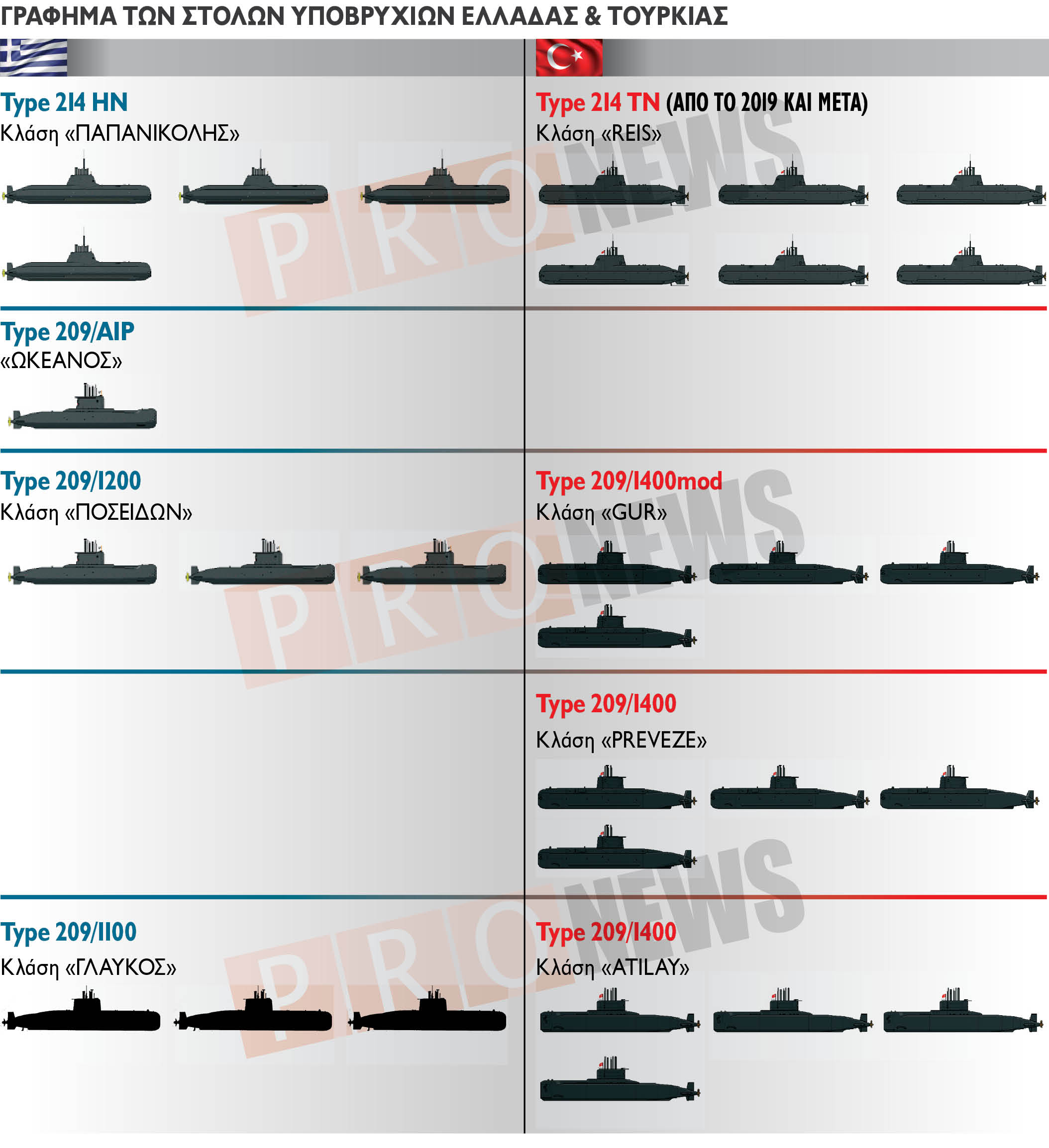 Γράφημα με λεπτομερή παρουσίαση των υποβρυχίων Ελλάδας και Τουρκίας