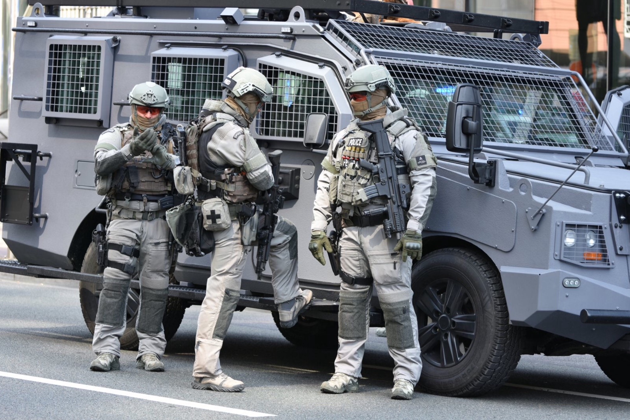 Οι τρομοκρατημένοι περαστικοί έτρεξαν να βρουν καταφύγιο στην κεντρική λεωφόρο της πόλης, την λεωφόρο Avroy με πυροβολισμούς και σειρήνες να ακούγονται στο βάθος καθώς οπλισμένοι αστυνομικοί περικύκλωσαν το μέρος