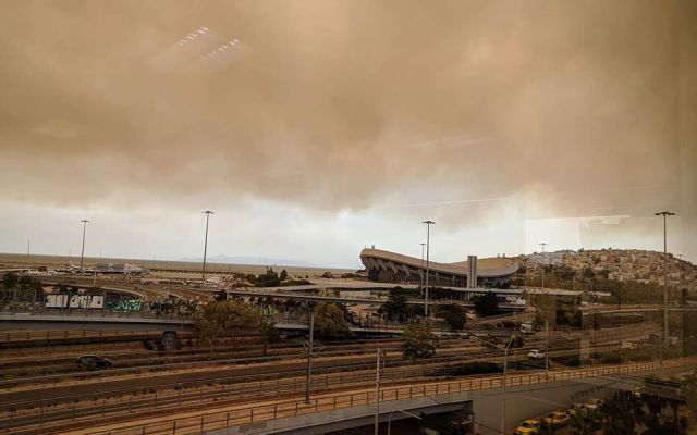 Για να γίνει κατανοητή η έκταση αυτού του «σύννεφου» αυτόπτες μάρτυρες από τον Άϊ Γιώργη Σαλαμίνας περιγράφουν ως εξής: «Έχει καλυφθεί ο ουρανός από ένα μαυροκόκκινο νέφος. Ξεκίνησε η ημέρα με λιακάδα και ο ήλιος έχει τώρα κρυφτεί. Μοιάζει σαν ο ουρανός να είναι κάποιου άλλου πλανήτη, πάντως δεν έχει γαλάζιο χρώμα»