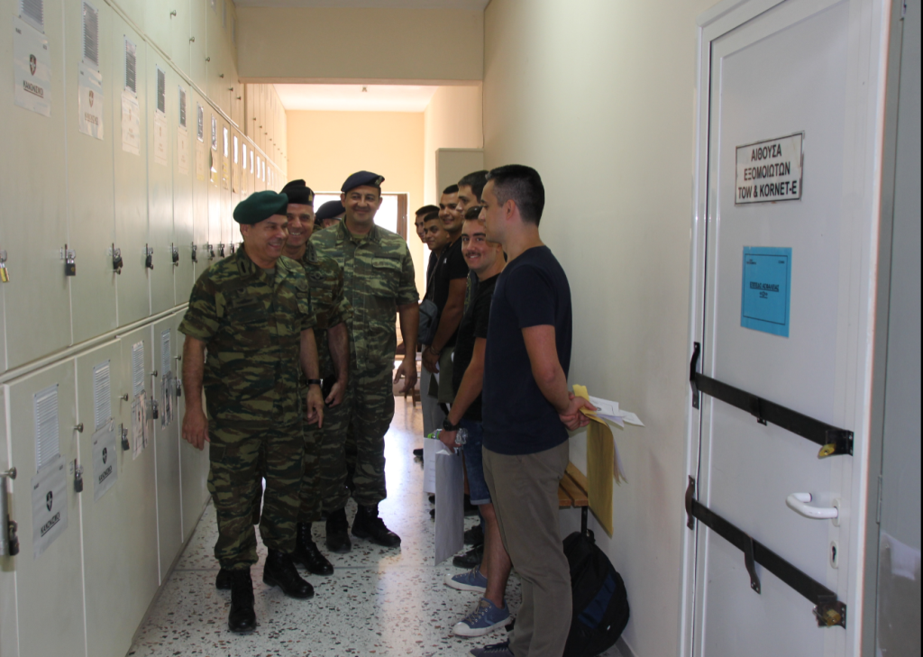 Στη συνέχεια, μετέβη στο 221 Τάγμα Εθνοφυλακής (221 ΤΕ), το οποίο λειτουργεί ως Σημείο Υποδοχής Οπλιτών (ΣΥΠΟ) και παρακολούθησε μέρος της διαδικασίας κατάταξης Οπλιτών Θητείας της 2018 Ε΄ ΕΣΣΟ.