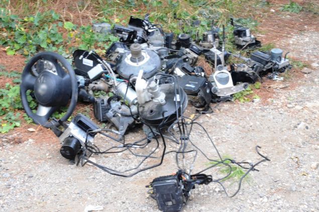 Σαράντα οκτώ κινητήρες αυτοκινήτων με πλαστογραφημένους ή παραποιημένους αριθμούς πλαισίου, 3 ΙΧ, 3 ΙΧ φορτηγά, πλήθος από ζεύγη πινακίδων κυκλοφορίας, ειδικός τεχνολογικός εξοπλισμός που χρησιμοποιείται για την κλοπή οχημάτων, μεγάλος αριθμός ανταλλακτικών αυτοκινήτων, εργαλεία αποσυναρμολόγησης οχημάτων και το χρηματικό ποσό των 3.720 ευρώ.