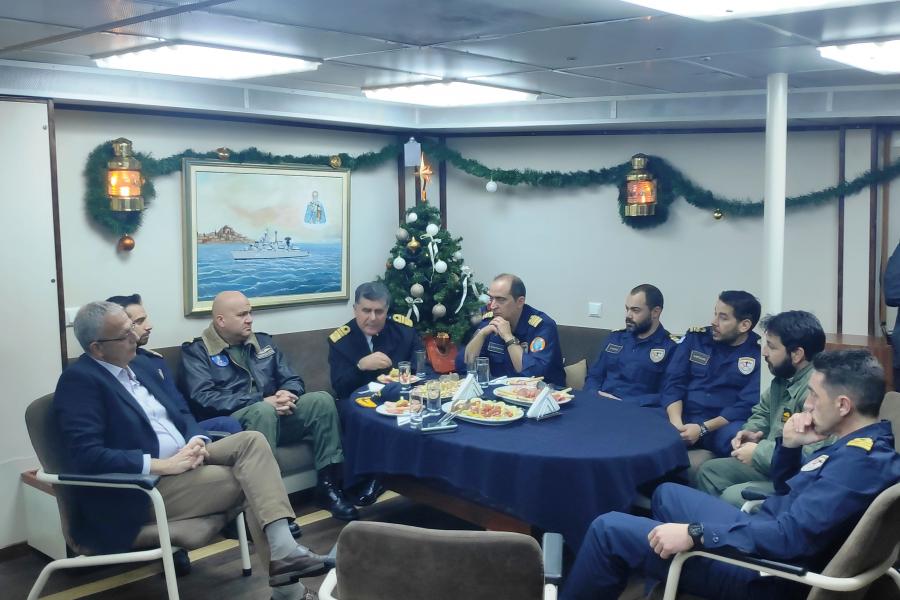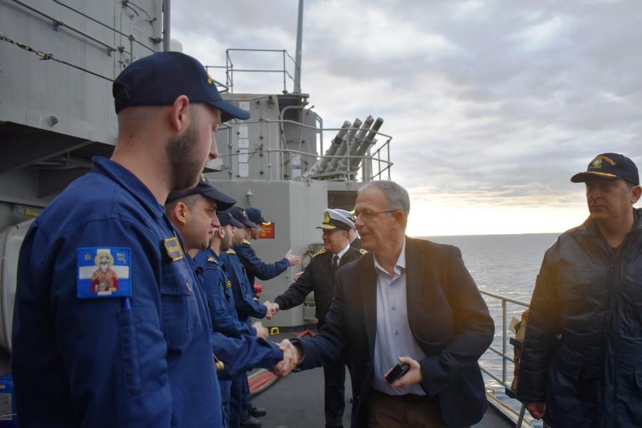 Ο Αναπληρωτής Υπουργός Εθνικής Άμυνας Παναγιώτης Ρήγας, σήμερα 28 Δεκεμβρίου 2018, συνοδευόμενος από τον Αρχηγό ΓΕΝ Αντιναύαρχο Νικόλαο Τσούνη ΠΝ, επισκέφθηκε τη φρεγάτα «ΚΟΥΝΤΟΥΡΙΩΤΗΣ» που εκτελεί χρέη πλοίου «φυλακής σκοπούντος», όπου αντάλλαξε ευχές με το πλήρωμα.