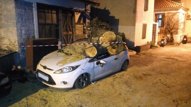 Αναστάτωση προκλήθηκε στην Πέτρα Λέσβου, όταν ένα δέντρο έκανε… θρύψαλα αυτοκίνητο.