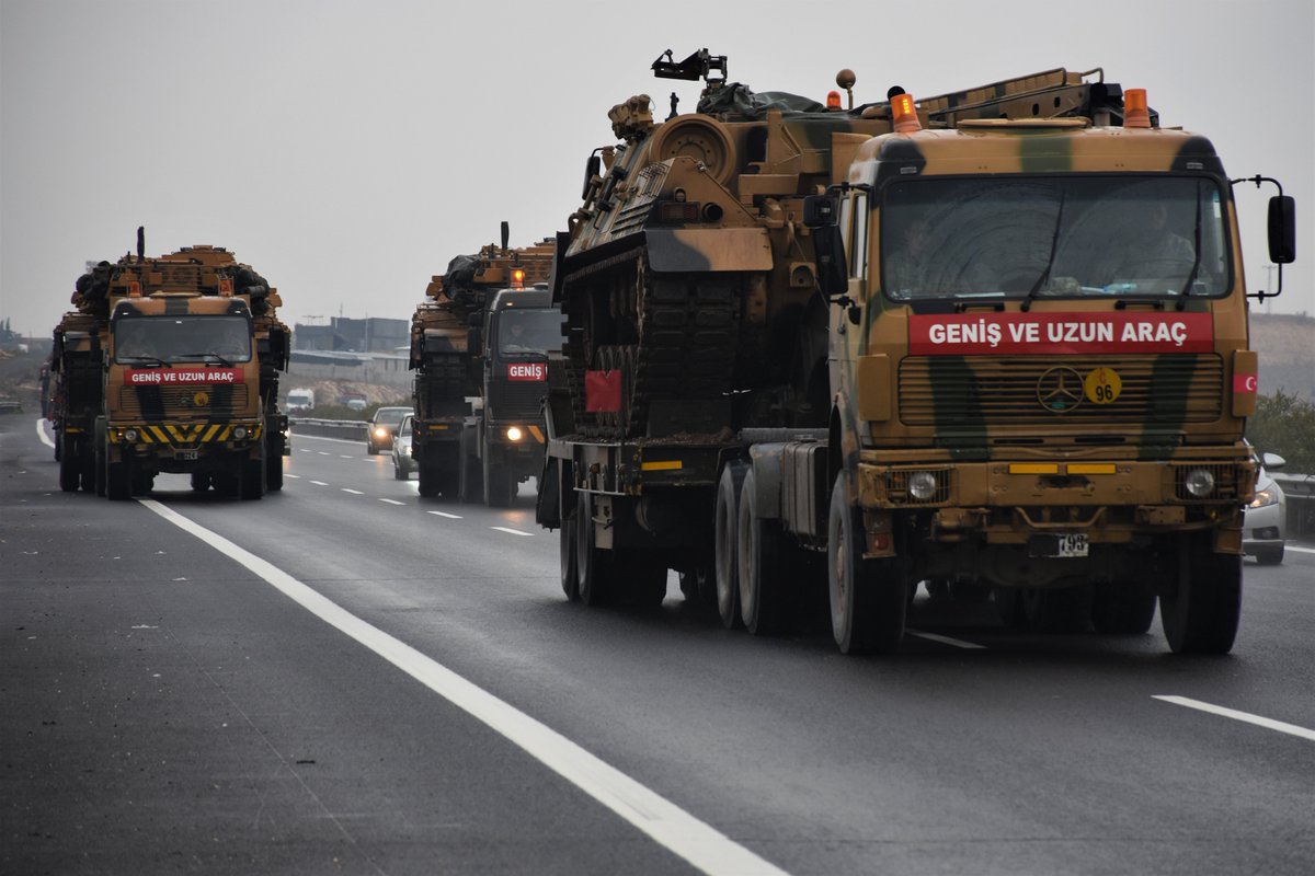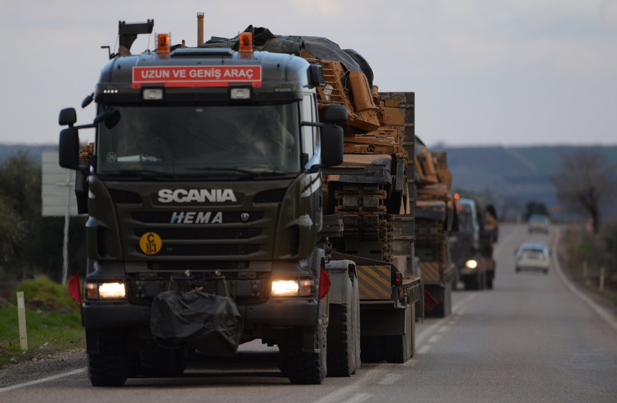 More Turkish military tanks on the way to eastern part of Turkey-Syria border. pic.twitter.com/xi1ksonj18